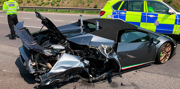 INGLATERRA.- Un Lamborghini Huracán Spyder nuevo quedó destrozado en un accidente tan solo 20 minutos después de que su dueño lo sacara del concesionario, informó el medio The Independent.