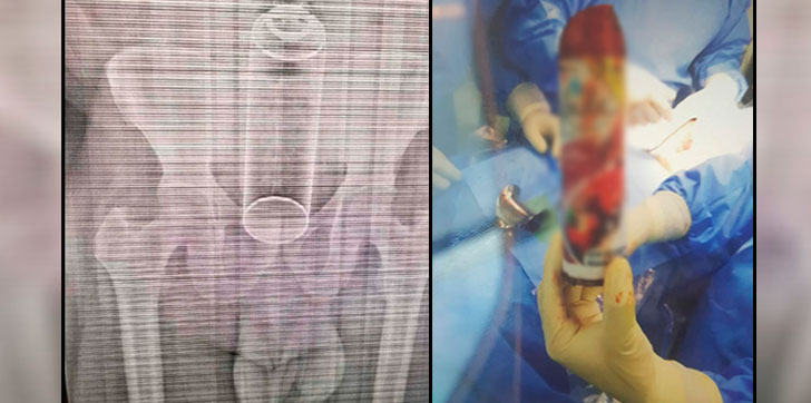 Inicialmente se había informado que se trataba de un frasco de insecticida, sin embargo tras la cirugía resultó ser un frasco de ambientador
