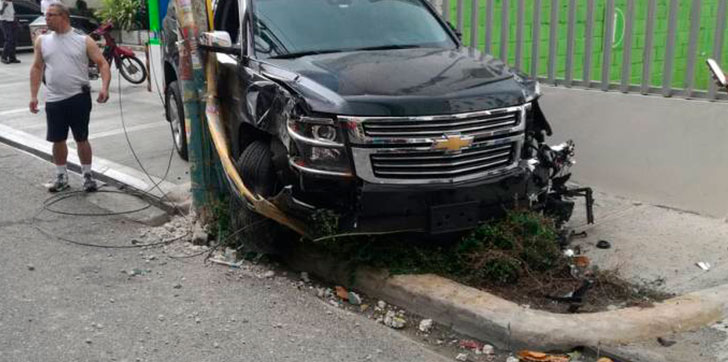 SANTO DOMINGO.- Una yipeta Chevrolet Tahoe negra chocó contra una motocicleta en la que se desplazaban dos personas la tarde de este lunes en la calle Presidente González, del sector Naco.