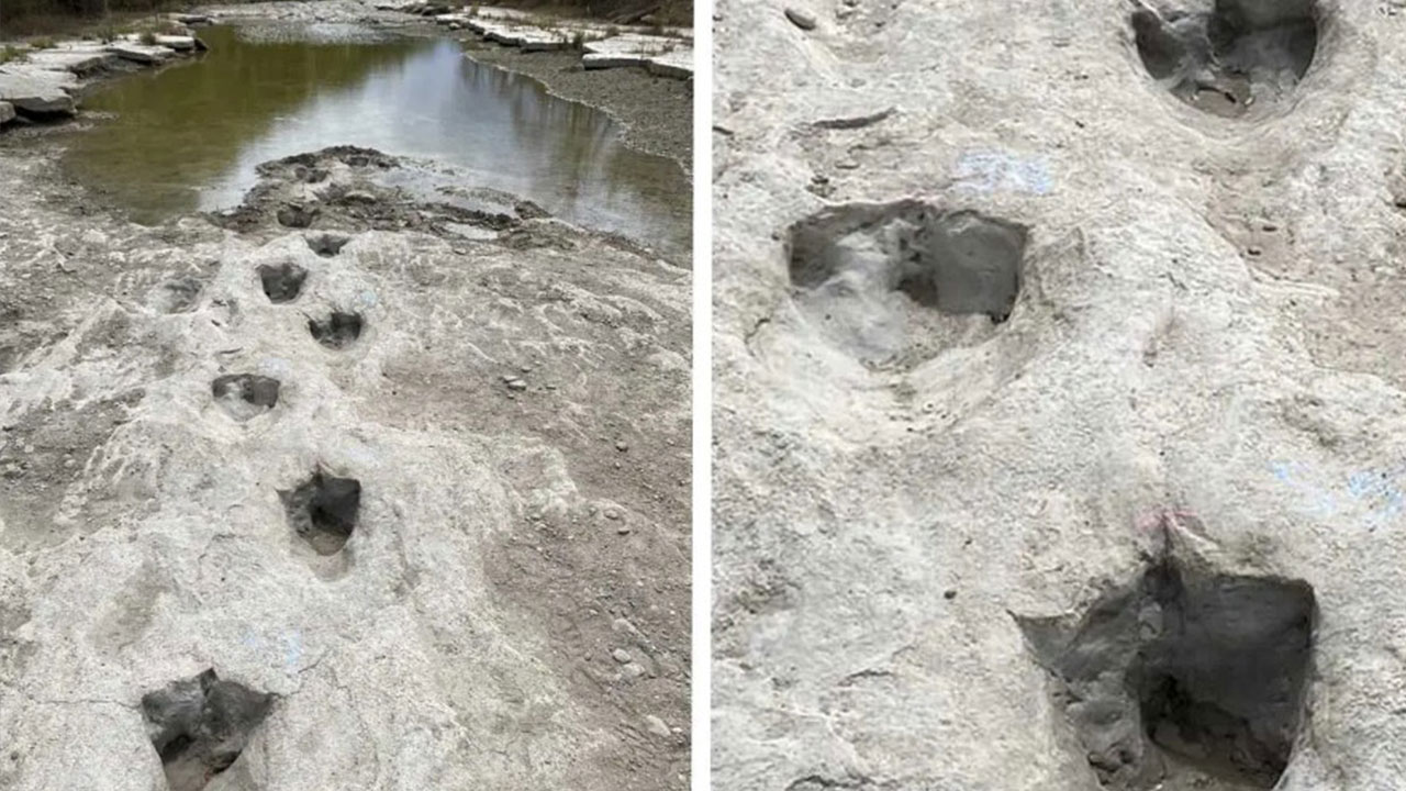Uno de los caminos de huellas de dinosaurios más largo encontrado quedó al descubierto luego de que el cauce de un río desapareciera por completo en Texas, situación que se habría dado debido a la sequía que afecta a esa zona de Norteamérica.