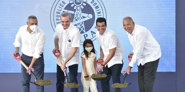 El presidente Luis Abinader y el director ejecutivo del Instituto Nacional de Aguas Potables y Alcantarillados (INAPA), Wellington Arnaud, dieron este domingo el primer palazo para iniciar los trabajos de terminación del alcantarillado sanitario y la construcción de la nueva planta de tratamiento de aguas residuales del municipio de Villa Riva, de la provincia Duarte.