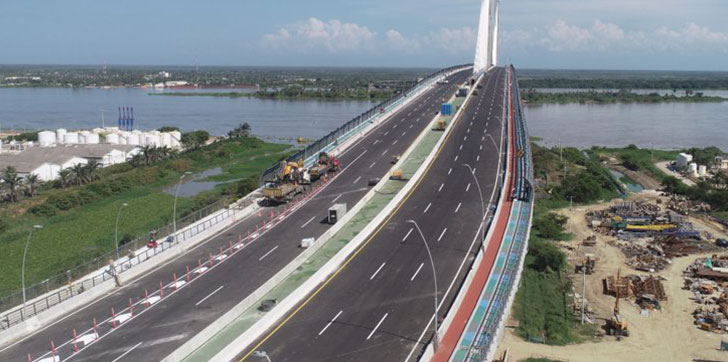 COLOMBIA.– El Gobierno colombiano puso en servicio en la ciudad caribeña Barranquilla el Puente Pumarejo, construido por la empresa española Sacyr y que es el más ancho de su tipo en América Latina con 38,1 metros.