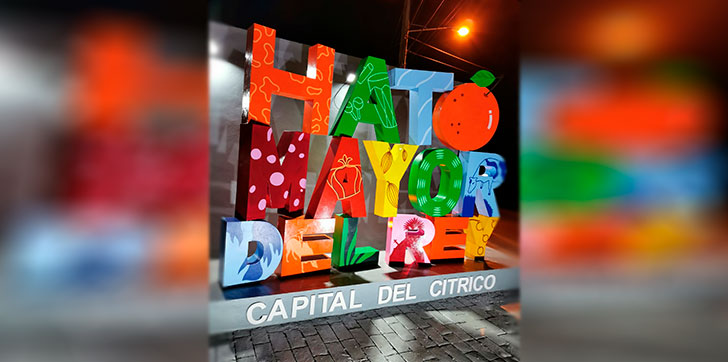Los colores relevantes o encendidos de las letras del monolito o bloque con la palabra “Hato Mayor del Rey” son las que encierran y dan paso a la idiosincrasia de los nativos de este pueblo, fundado hacia 1520.