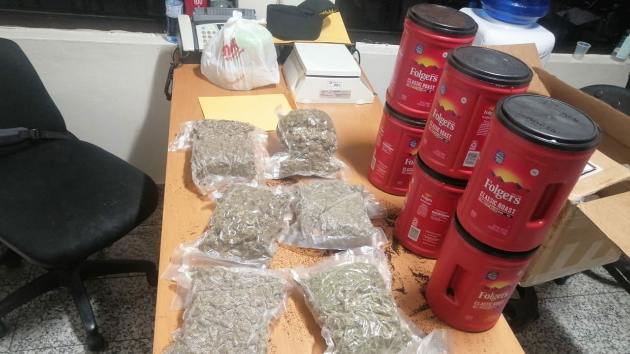 En presencia de un fiscal se procedió abrir la caja, donde se encontraron seis envases de plástico, que simulaban ser de café y en cuyo interior se ocuparon seis paquetes de marihuana, con un peso preliminar de ocho libras.