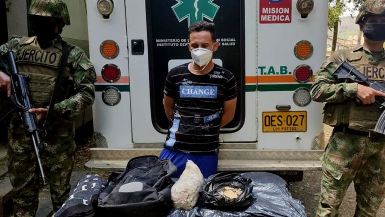 MEDELLÍN.- El Ejército de Colombia confirmó este jueves la incautación de una ambulancia en el departamento de Norte de Santander (fronterizo con Venezuela) que transportaba en su interior 3,5 kilos de cocaína, así como la detención del conductor.