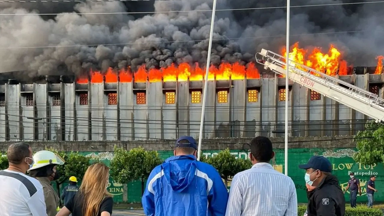 Unidades del Cuerpo de Bomberos del Distrito Nacional tratan de sofocar el fuego desde la madrugada. En el lugar se encuentra la alcaldesa del Distrito Nacional, Carolina Mejía.
