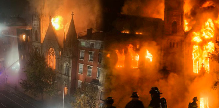 Incendio masivo destruyó iglesia histórica en el Bajo Manhattan