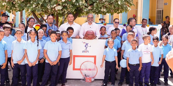 INEFI realiza entrega de tablero, aros y balón en escuela Máxima Tavárez de SFM