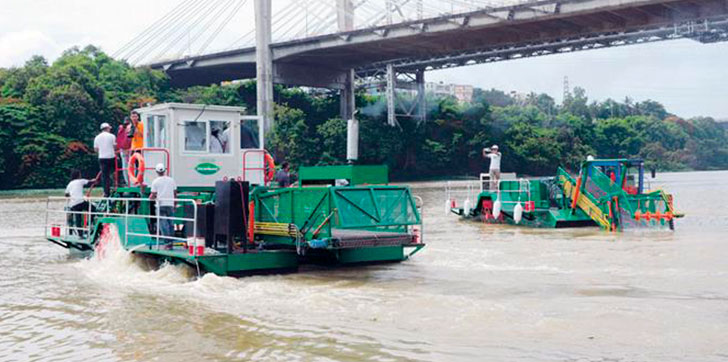 Los barcos tienen la capacidad de recolectar plantas acuáticas, plásticos y otros desechos que se encuentran flotando en los ríos en un ancho de 1.6 metros y profundidad de 1.2 metros.
