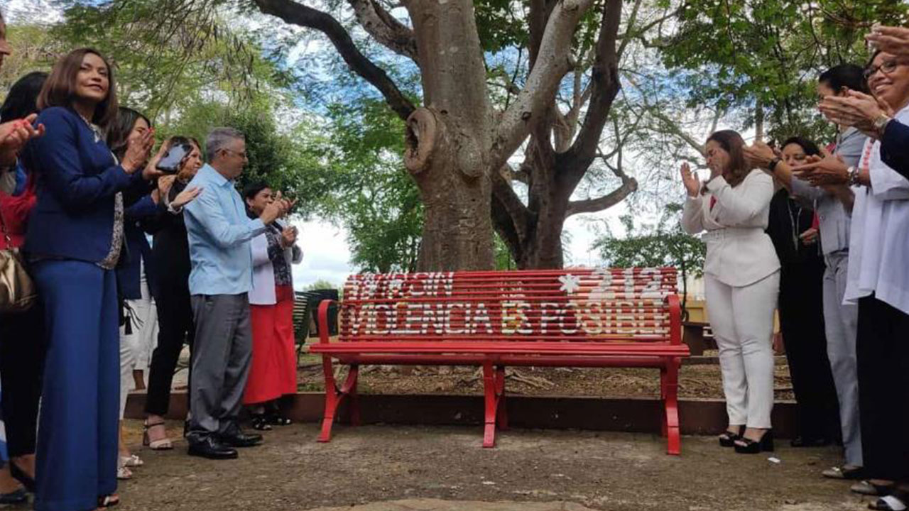 Dijo que en cada caso se colocará en el banco el mensaje “Vivir sin violencia es posible” junto a *212, que es el mecanismo de reportes y denuncias de situaciones de violencia o vulnerabilidad de la mujer.