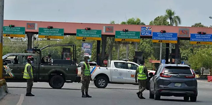 Militares y policías fueron apostados en peajes para impedir el paso de personas desde y hacia el interior como medida para frenar el avance del coronavirus.