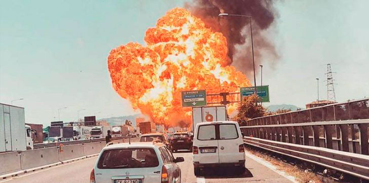 Según la prensa local, el fuego se debió a un accidente de tráfico registrado en la zona Borgo Panigale, cercana al aeropuerto.