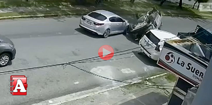 SAN FRANCISCO DE MACORÍS.- Una jeepeta se volcó luego de chocar contra un vehículo estacionado durante el mediodía de este miércoles.