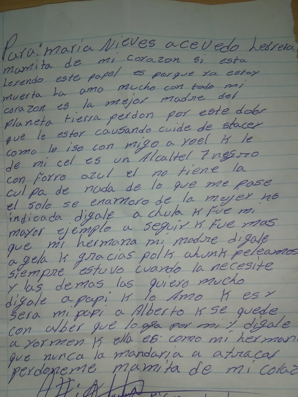Al lugar se presentaron las autoridades correspondientes, quienes al realizar una inspección hallaron un envase con la sustancia tóxica encima de una mesa, además de una carta dirigida a su madre.