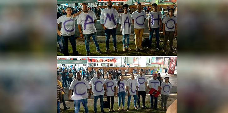 Armados de valor, los jóvenes vistieron una camiseta blanca con una letra cada uno, en la que componían juntos el letrero que dice: “Camacho Corrupto”.
