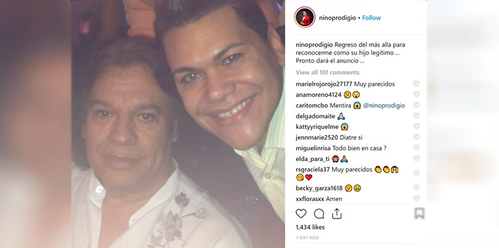 El «Niño Prodigio» compartió esta semana en su cuenta en la red social una fotografía junto a Juan Gabriel y reveló que es un hijo no reconocido por el intérprete mexicano.