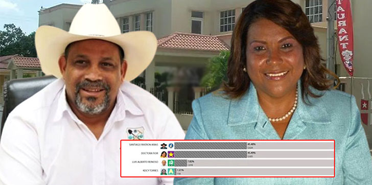 Hasta el momento el resultado preliminar emitido en el último boletín emitido por la Junta Central Electoral (JCE), otorga 5,924 de los votos emitidos a Santiago Riverón Arias, candidato del Partido Revolucionario Moderno (PRM), contra 5,925 votos a Fiordaliza Caridad Ceballos, candidata del Partido de la Liberación Dominicana (PLD).
