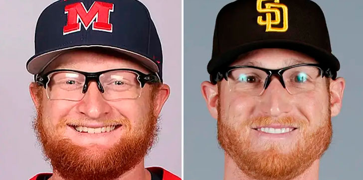 Brady Feigl, de 32 años, que es jugador de los Long Island Ducks, parece casi idéntico al otro Brady Feigl, de 27 años, que juega para los Aviators de Las Vegas. La pareja mide 6 pies, cuatro pulgadas de alto, tiene el pelo rojo ardiente y usan lentes.