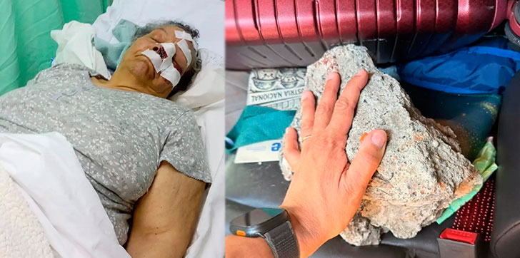 La tragedia ocurrió en el momento en que la señora Mercedes Gil regresaba desde el aeropuerto. Al transitar por debajo del puente seco que conecta la Avenida 25 con San Isidro, un individuo lanzó un peñón que atravesó el cristal del automóvil, impactando directamente la cara de la anciana. Debido a la severidad de las heridas, la señora Gil tuvo que recibir aproximadamente 30 puntos de sutura, mientras que su nieto resultó con golpes contusos en el hombro, la pierna y el torso.