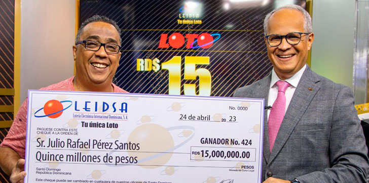 AGENDA56, SANTO DOMINGO.- El señor Julio Rafael Pérez Santos recibió su premio de 15 millones de pesos correspondiente al sorteo de “Tu única Loto”, del pasado miércoles 29 de marzo del 2023.