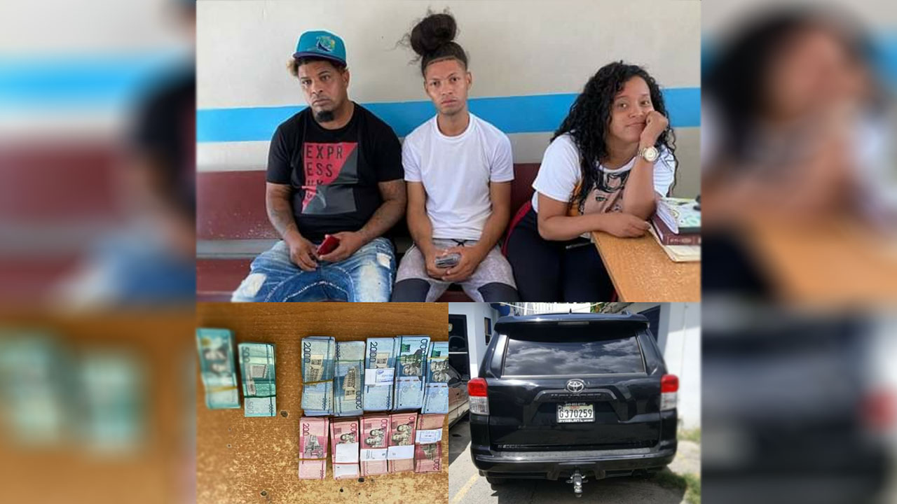 Los jóvenes que residen en Joba Arriba de Gaspar Hernández, se desplazaban a bordo de la yipeta Toyota Runner negro, placa G370259, con más de un millón de pesos en efectivo y sin nada que justificara su procedencia.