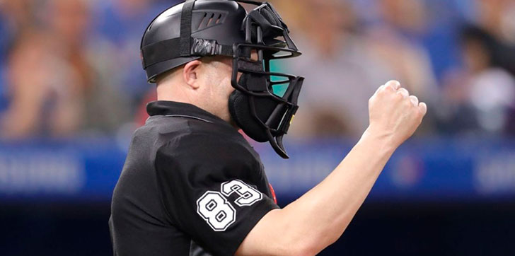 El umpire del plato Brian deBrauwere utilizó un auricular conectado a un iPhone que llevaba en el bolsillo, para indicar lo que se le dictaba desde un sistema computarizado TrackMan, que emplea un radar Doppler.