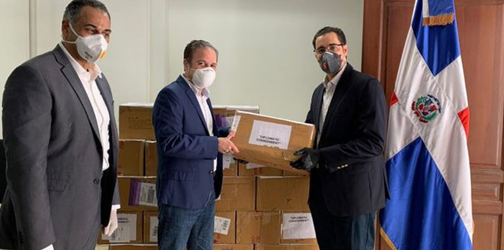 La entrega del donativo fue realizada en la sede del Ministerio de Relaciones Exteriores (Mirex) por el viceministro de Asuntos Económicos y de Cooperación, Hugo Rivera, acompañado del embajador dominicano en la India y quien coordinara el envío, Hans Dannenberg Castellanos, siendo recibida por una comisión especial de la lucha contra el COVID-19, encabezada por Juan Ariel Jiménez, ministro de Economía, Panificación y Desarrollo, en la sede del Mirex.