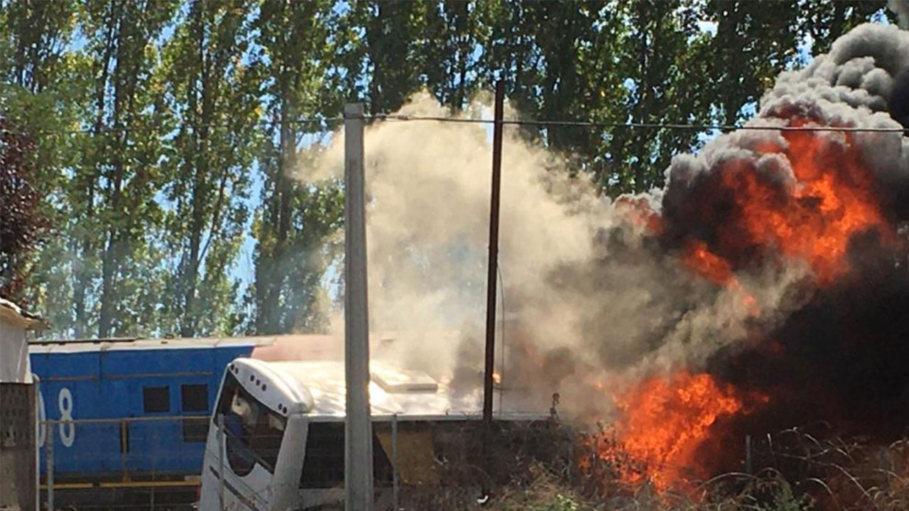 Según testigos del hecho, el tren de carga habría arrastrado al menos por 50 metros al bus que trasladaba a trabajadores de faenas agrícolas de temporada, el cual se incendió por completo.