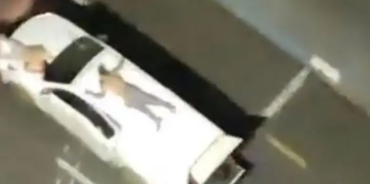 El primero tiene una persona atada a su techo y otra a su capó, mientras que en el segundo se puede ver a una persona agachada sobre la parte delantera del vehículo.
