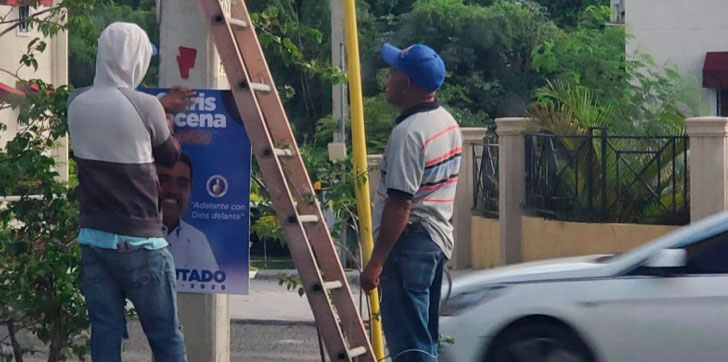 De acuerdo a la ley 33-18, uno de esos lugares son los postes del tendido eléctrico, que son precisamente los que están siendo utilizados con mayor frecuencia por candidatos de diferentes partidos para colocar afiches, pegatinas o carteles que exhiben la imagen de los precandidatos con sus diferentes eslóganes de campaña y colores alusivos a la organización partidista que pretenden representar.