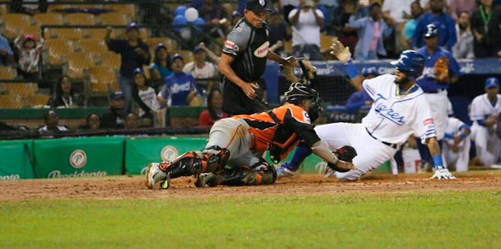 Los primeros en hacer carrera fueron los Tigres del Licey cuando hicieron una vuelta en la conclusión del primer episodio. Julio Borbón anotó desde remolcado por fly de sacrificio de Moisés Sierra, luego que llegara a esa almohadilla por sencillo de Erick Mejía.