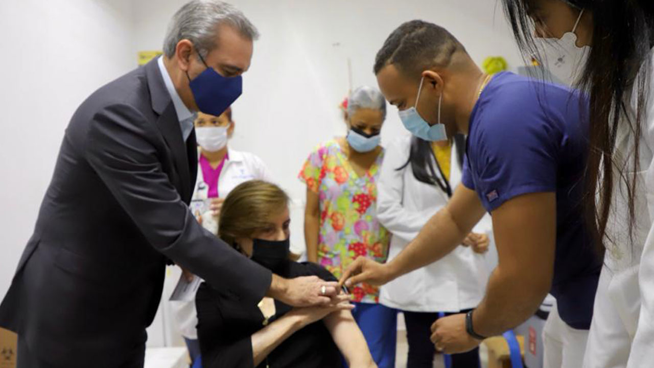 Luis Abinader acompaña a su madre a vacunarse contra el covid-19