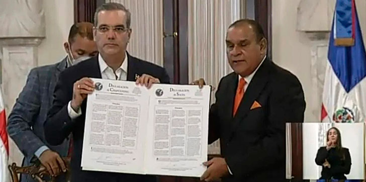 «Como presidente dominicano quiero hoy, con la firma solemne de esta declaración, comprometerme a que nuestra democracia sea más plena, más trasparente, más justa y más libre», expresó Luis Abinader.