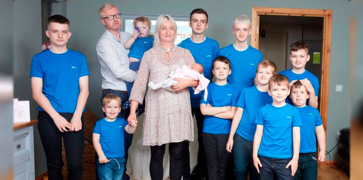 Los hijos que tiene la pareja son Campbell (17 años), Harrison (16), Corey (14), Lachlan (11), Brodie (nueve), Brahn (ocho), Hunter (seis), Mack (cinco), Blake (tres( y Rothagaidh (dos).