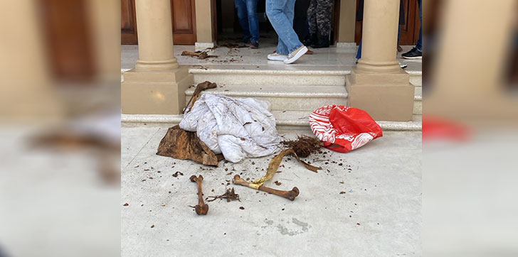 AGENDA56, LA ALTAGRACIA.- Una madre profanó la tumba de su hija, tomó la osamenta y luego lanzó en la entrada de la Fiscalía de Higüey, en la provincia La Altagracia.
