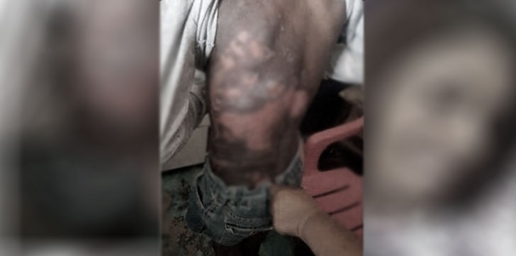 En una fotografías tomadas por los vecinos a la niña cuyo nombre se omite para preservar sus derechos, se observa el estado en que quedó la menor, luego de que supuestamente la madre le lanzara agua caliente provocándole quemaduras de primer, segundo y tercer grado.
