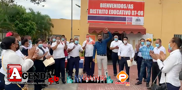 Acompañados del presidente municipal de la Asociación Dominicana de Profesores (ADP), Robert Frías, los docentes vociferaban consignas en dicha unidad distrital.