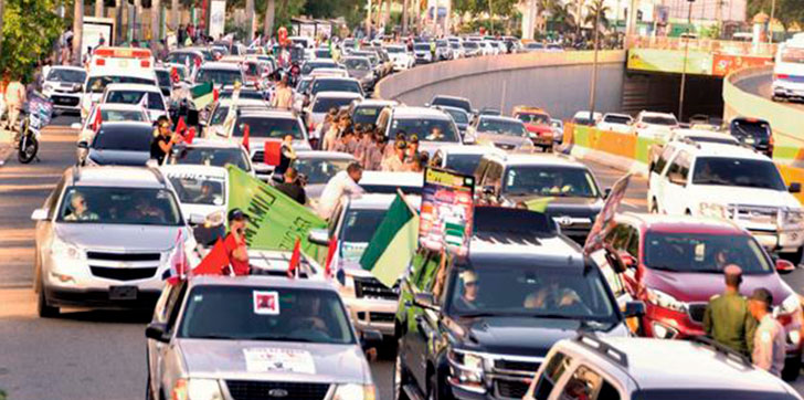 El punto de partida de la caravana fue en la avenida Tiradentes, a la altura del Estadio Quisqueya, a las 4:30 de la tarde, desde donde tomaron la avenida Pedro Livio Cedeño, hasta la Máximo Gómez, atravesando la avenida 27 de Febrero y concluyendo en la Plaza de la Bandera, casi tres horas y media después.