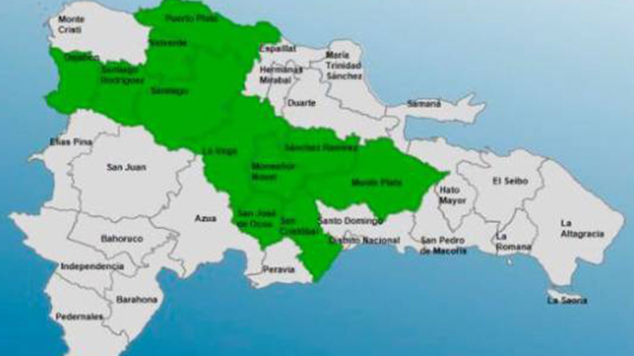 Las provincias en alerta verde que mantiene el COE son Monseñor Nouel, La Vega, Monte Plata, San Cristóbal, Sánchez Ramírez, San José de Ocoa, Santiago, Dajabón, Puerto Plata, Santiago Rodríguez y Valverde.