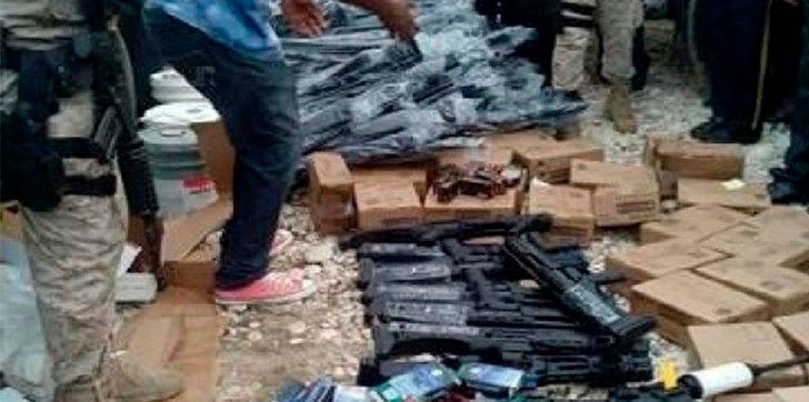 Según el comunicado de la AGD, fueron incautados «12 fusiles de asalto, 14 pistolas, 999 cartuchos entre ellos 638 de calibre 2.56, 278 de calibre nueve milímetros, 52 de calibre 7.62 y 36 de calibre 40, y 34 cargadores».
