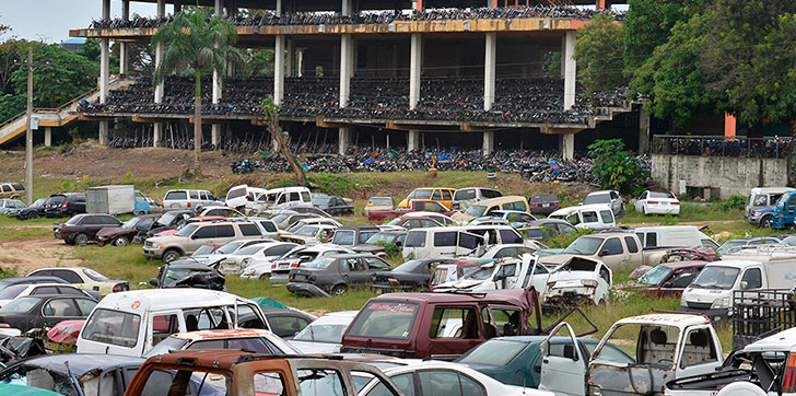 Los datos ofrecidos por la Digesett señalan que el centro con mayor cantidad de vehículos detenidos es el canódromo “El Coco”, ubicado en la avenida Monumental con República de Colombia, donde a la fecha hay 6 mil 937 motores y 1,083 carros.
