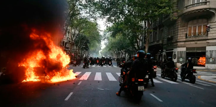 Más de 20 heridos y 100 detenidos tras enfrentamientos durante manifestación en Argentina