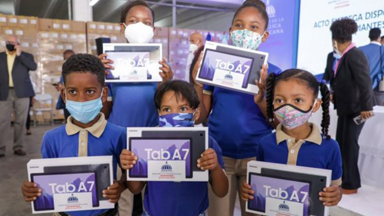 AGENDA56, SANTO DOMINGO.- El presidente, Luis Abinader y el ministro de Educación, Roberto Fulcar, presentaron más de medio millón de dispositivos tecnológicos que han llegado al país y que serán entregados a estudiantes de educación primaria de las escuelas públicas.