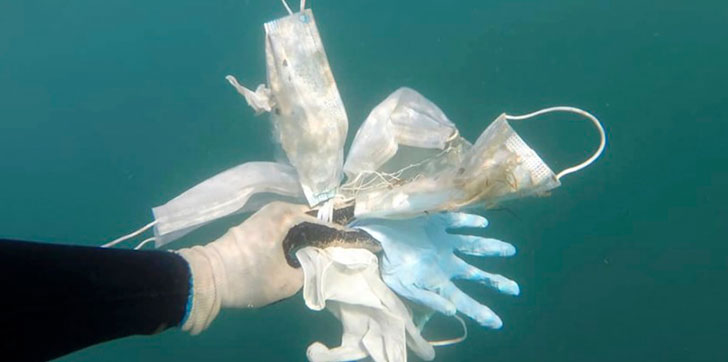 Un video grabado la semana pasada por el grupo Operation Mer Propre Sea (Operación mar limpio) muestra mascarillas y guantes dispersos en el lecho del mar, entre latas de cerveza, colillas de cigarrillos y más basura.