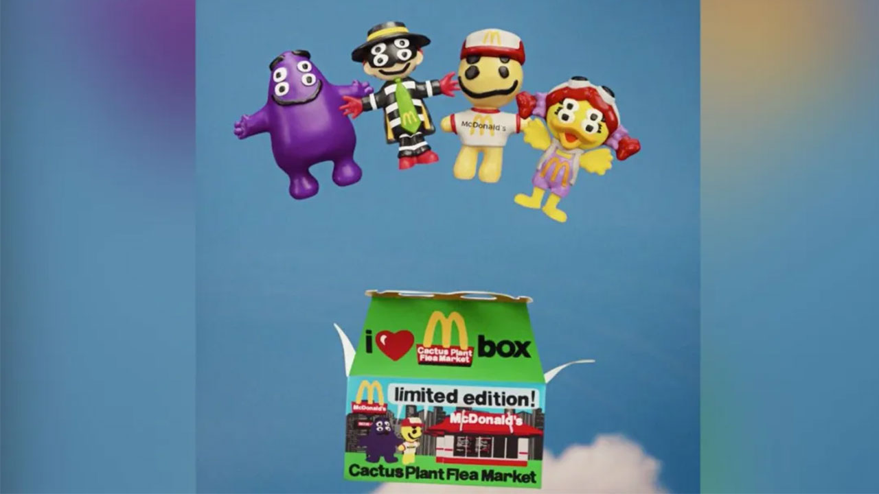 McDonald’s traerá de regreso a su familia de personajes en una nueva “Happy Meal” o “Cajita Feliz” para adultos que, sí, incluye los juguetes. A partir del 3 de octubre, los clientes podrán pedir una “Cactus Plant Flea Market Box”: un Big Mac o unos McNuggets de pollo de 10 piezas, con papas fritas y una bebida. La comida es una colaboración entre la marca de ropa de calle y la cadena de comida rápida, que apuesta por la nostalgia.