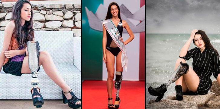 Chiara Bordi, de 18 años, quien perdió su pierna en un accidente de bicicleta cuando tenía 13 años, fue elegida como una de las tres finalistas en la competencia que ganó Carlotta Maggiorana.