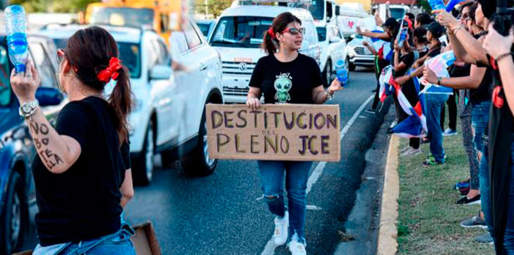La tarde de ayer, decenas de personas vestidas de negro se presentaron frente a la Junta Central Electoral ( JCE) para exigir que se respete a la democracia y al pueblo dominicano. Además, pidieron la renuncia del pleno de la Junta. Allí se encontraba Melymel, de las pocas figuras conocidas, junto a un grupo de jóvenes de diversos colectivos “Revoltiao” y “Somos Pueblo”.