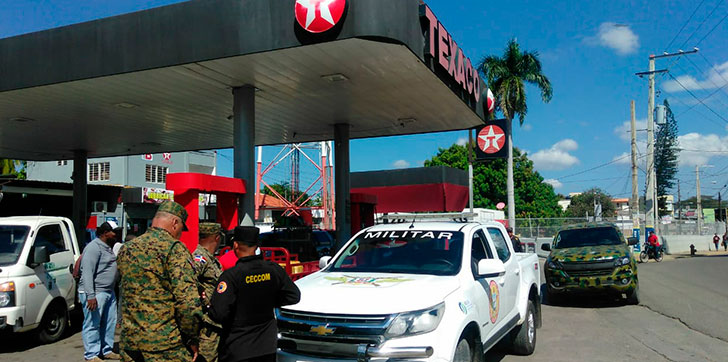 Miembros del Ejército de la República Dominicana (ERD), del Cuerpo Especializado en Seguridad Fronteriza Terrestre (CESFRONT) y del Cuerpo Especializado de Control de Combustibles (CECCOM), custodian las diferentes estaciones por instrucciones del Ministerio de Defensa.
