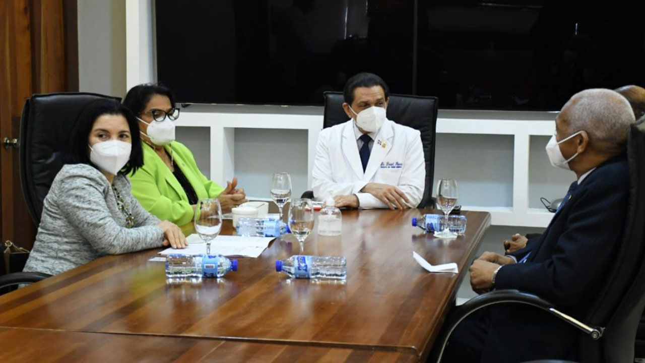 El titular del organismo de Salud recibió en su despacho a la rectora de la Universidad Autónoma de Santo Domingo (UASD), doctora Emma Polanco Melo; a la doctora Rosel Fernández, decana de la Facultad de Ciencias de la Salud y al doctor Mauro Canario, vicerrector de Investigación y Posgrado.