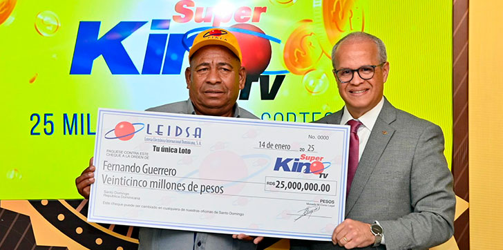 AGENDA56, SANTO DOMINGO. – La Lotería Electrónica Internacional Dominicana S.A (Leidsa) informó la entrega de 25 millones al ganador del Súper Kino Tv, en el sorteo correspondiente al pasado martes 17 de diciembre.